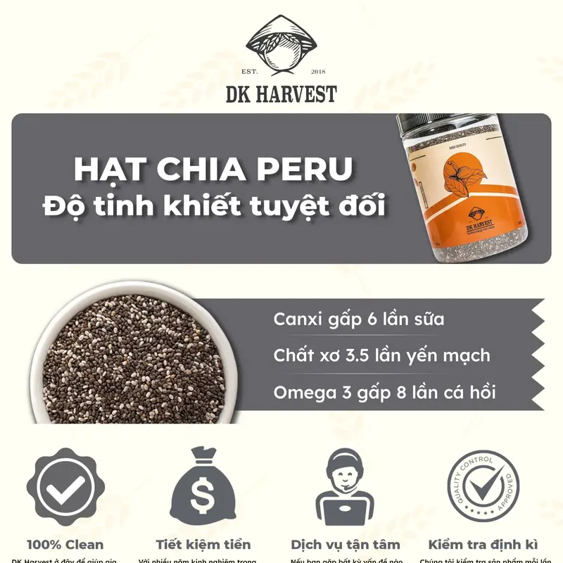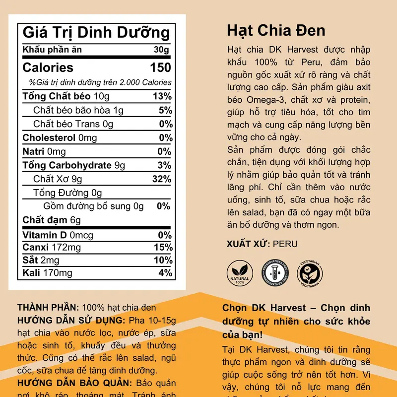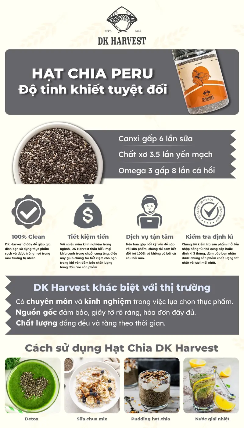 Hạt chia đen DK Harvest là sự lựa chọn hoàn hảo cho những ai muốn duy trì một lối sống lành mạnh. Với độ tinh khiết cao và bổ sung omega-3, sản phẩm này mang lại năng lượng dồi dào cho bạn suốt cả ngày dài.
